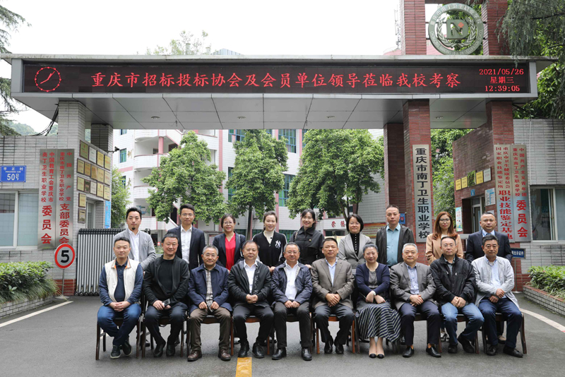 2021年5月26日上午,市招投標協會會長李有余、監事長王太平、副會長姜世文等領導一行,蒞臨我司開展調研工作。公司董事長張雷、總經理吳詠梅、副總經理何雨、袁鋒及重慶市南丁衛生職業學校常務副校長譚立群、副校長張揚等陪同調研。