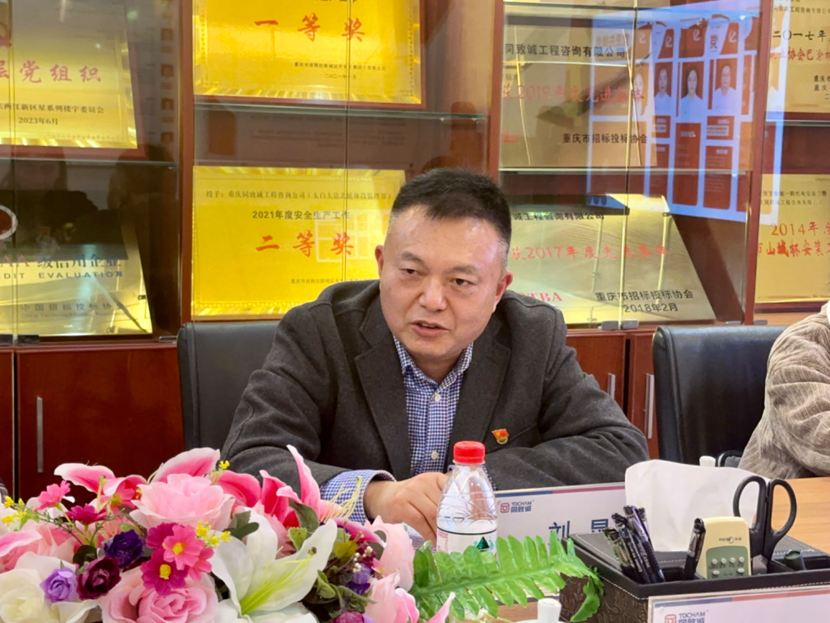 會上,張董事長對劉書記的到訪表示熱烈歡迎和感謝,并從集團(tuán)公司工程咨詢、檢測、產(chǎn)教融合、海外事業(yè)四大版塊做了全面介紹。張董事長說:“2003年,我開始創(chuàng)業(yè),經(jīng)過20年的發(fā)展公司取得了一些成績,黃桷灣立交、重慶江北國際機(jī)場T3航站樓等等都有同致誠的身影。但是現(xiàn)在受大環(huán)境影響,企業(yè)經(jīng)營有一定的困難,也希望黨委、政府多支持民營企業(yè)發(fā)展。”