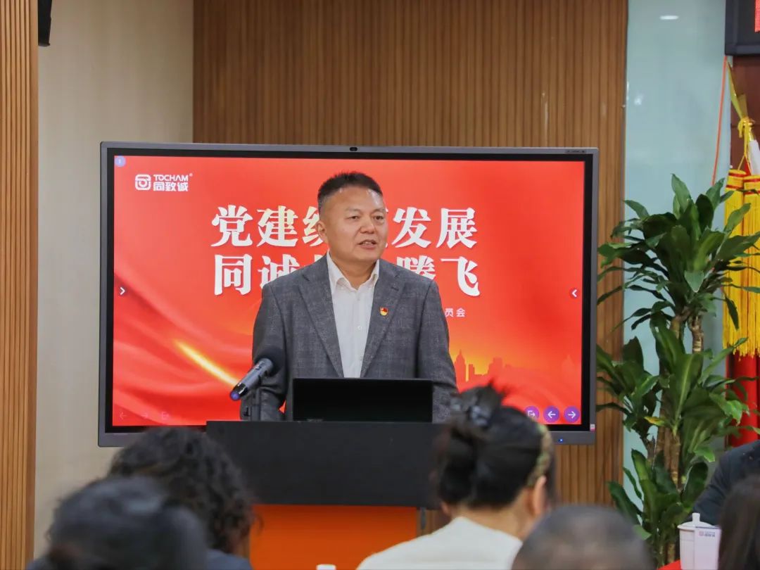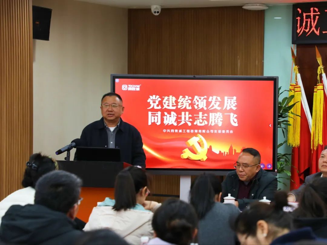 隨后,會議在同致誠黨支部副書記、副總經理何雨的主持下正式拉開序幕,共話黨建引領發展的實踐路徑。同致誠黨支部書記劉星以《黨建統領發展 同誠共志騰飛》為主題,從“加強四項建設,堅定主心骨,引領公司發展正確政治方向;構建'三項機制',建好連心橋,擴延黨建工作新格局;開展'雙強雙帶',提升向心力,激活黨員先鋒能效引擎;守住一個底線,打好護心錘,保證公司健康持久發展 ”全面總結了黨建工作開展情況,分享了黨建引領公司發展的寶貴經驗 ,為企業黨建與業務融合提供了可借鑒的思路。