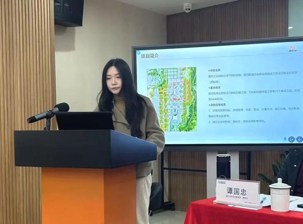 此外,負責公司技術監審工作的陳俊君還詳細匯報了我司在重慶江北國際機場T3B航站樓、第四跑道及配套設施建設工程全過程造價咨詢(四標段)中,運用數字新咨詢生產力平臺的使用效果。