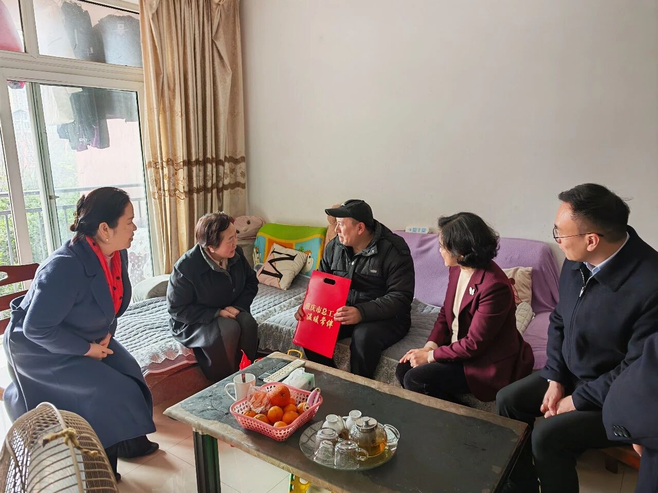 歲末年初,寒意漸濃,但關(guān)懷與溫暖從未缺席。為切實(shí)把黨委、政府的關(guān)懷和工會(huì)組織的溫暖送到職工心坎上,近日,市人大常委會(huì)副主任、黨組成員,市總工會(huì)主席陳元春帶隊(duì)赴兩江新區(qū)開(kāi)展2026年元旦春節(jié)送溫暖慰問(wèn)活動(dòng),并走訪(fǎng)慰問(wèn)了我司困難職工劉勇。兩江新區(qū)工會(huì)主席郭麗娟、星系列樓宇工會(huì)聯(lián)合會(huì)主席邱莎、同致誠(chéng)公司工會(huì)主席楊渝疆陪同慰問(wèn)。
