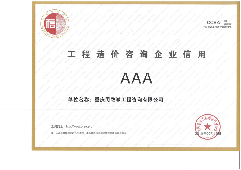 工程造價咨詢企業信用3A