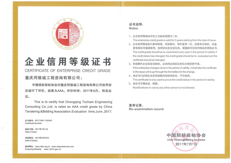 中國招標投標協會AAA級企業信用等級