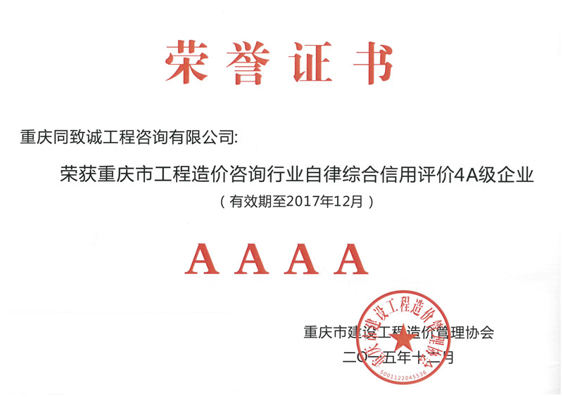 重慶市工程造價咨詢企業信用4A