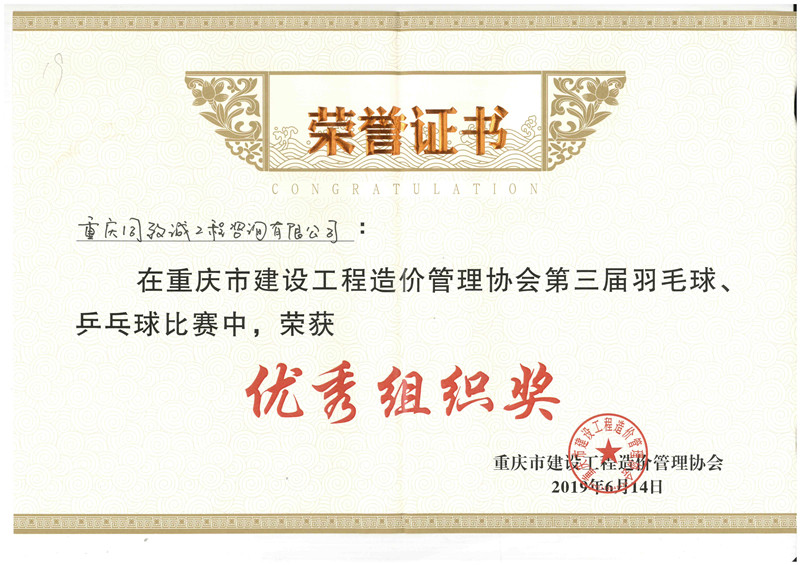 重慶造價協會第三屆羽毛球優秀組織獎