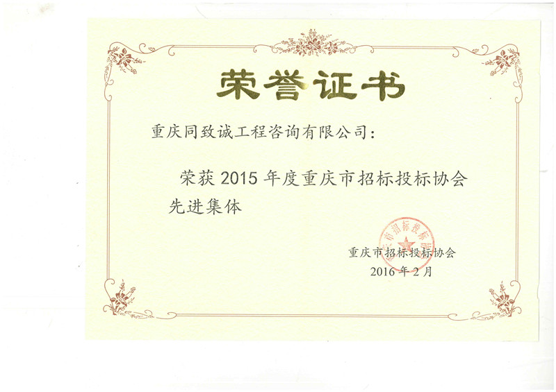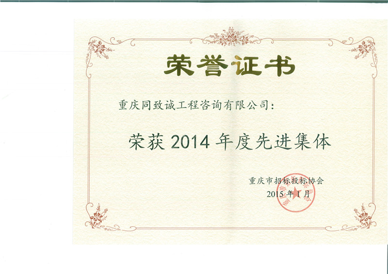 2014年度先進集體重慶招標投標協會