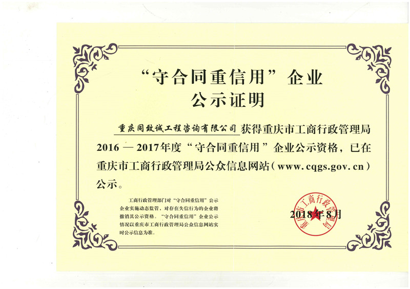 2016-2017重慶市守合同重信用