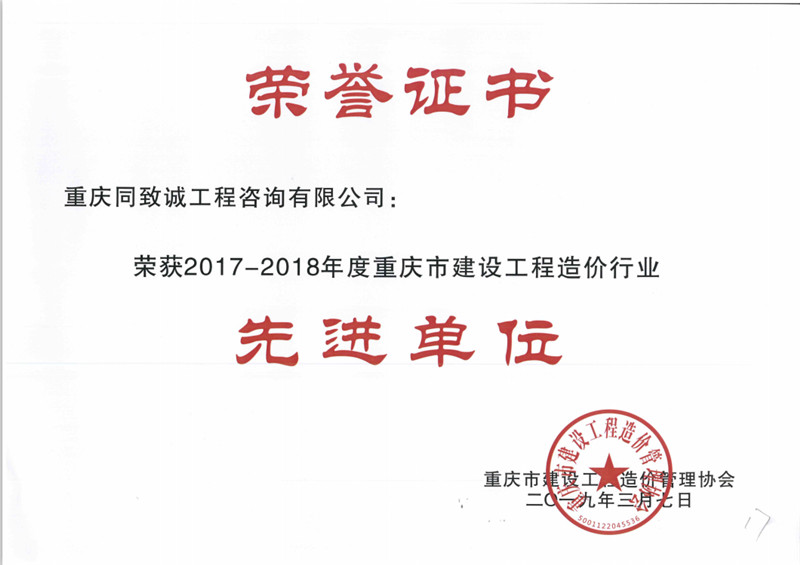 2017-2018年度重慶造價先進單位