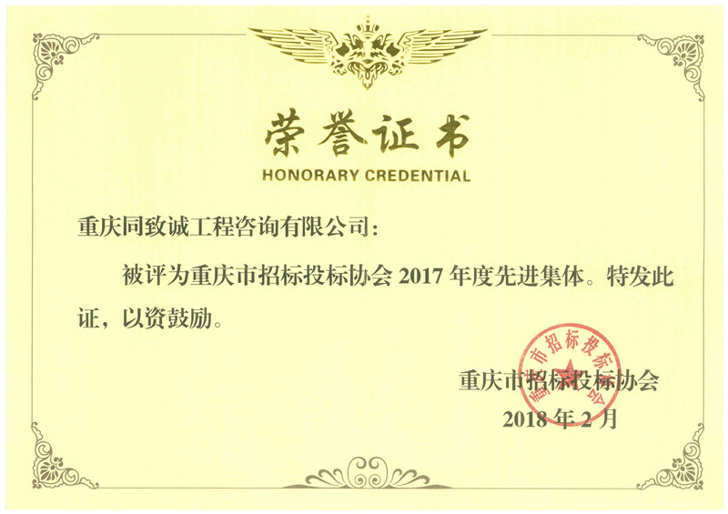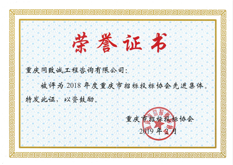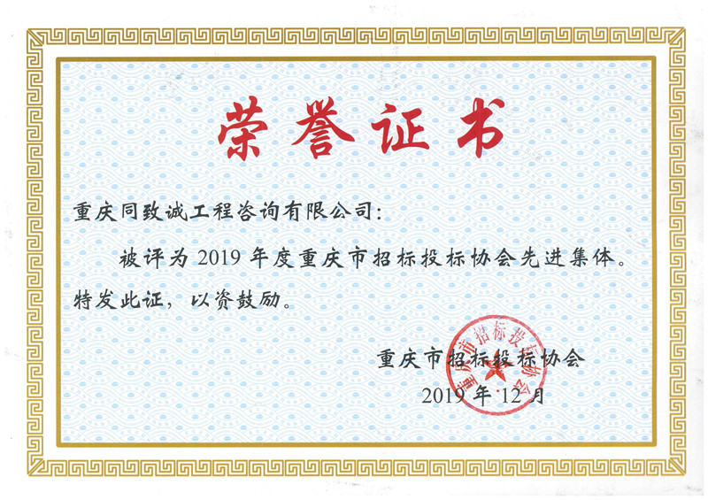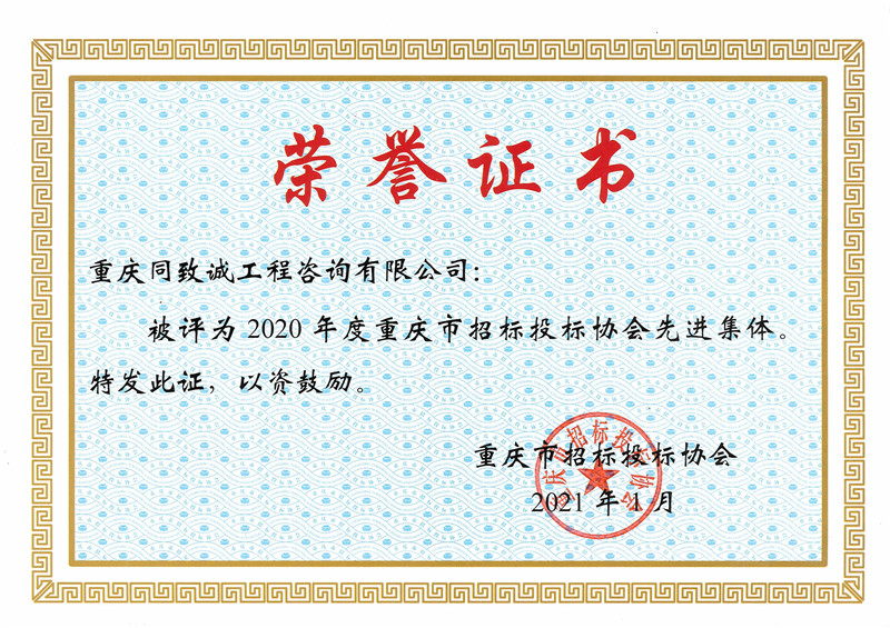 2020年度重慶市招投標誠信先進單位