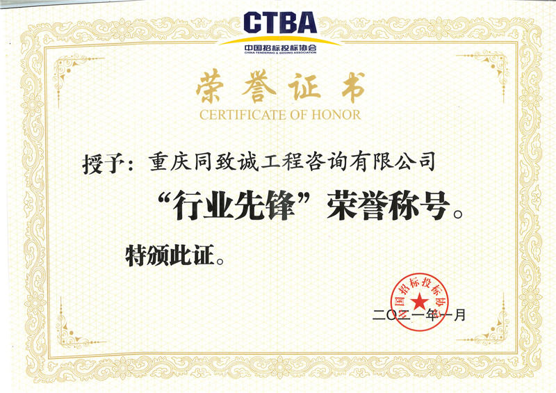 2020中國招投標協會-行業先鋒稱號
