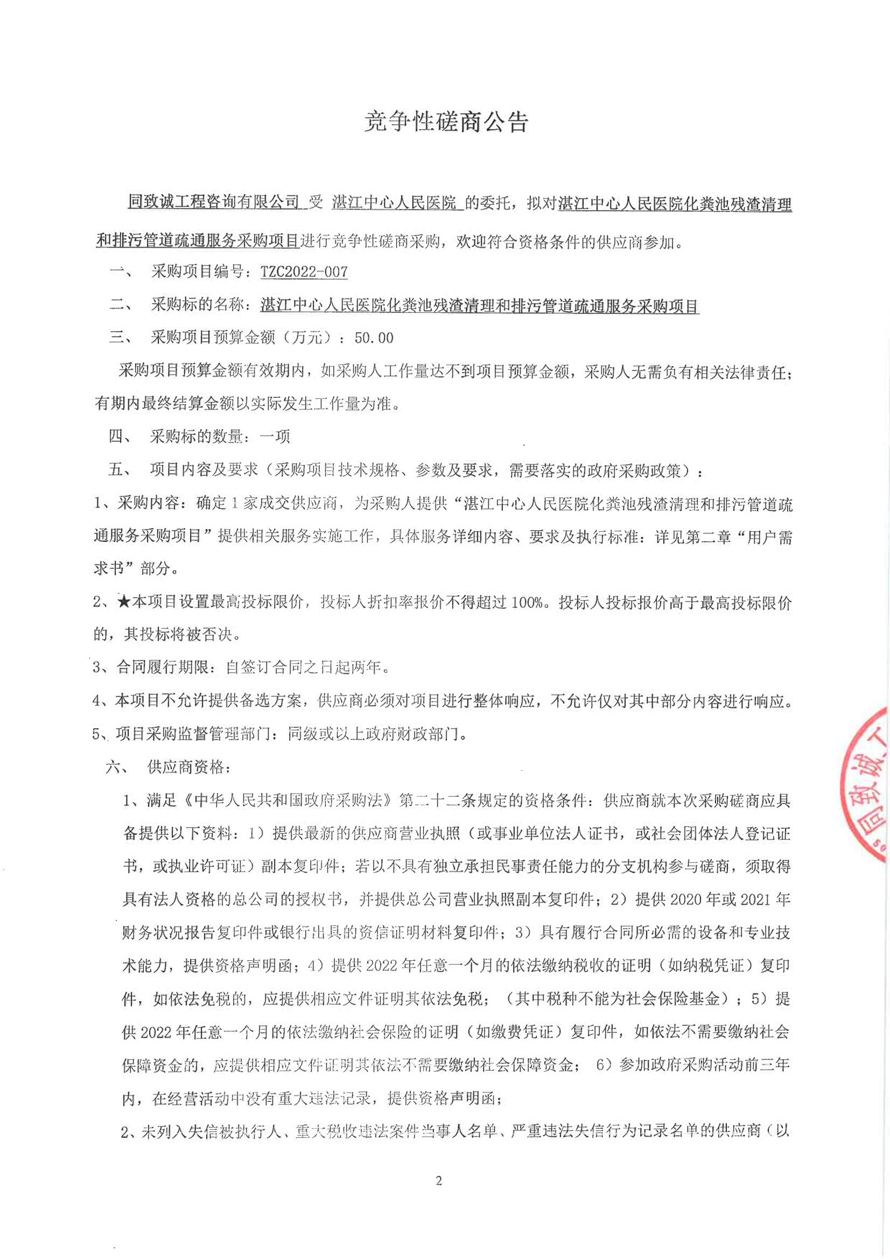 湛江中心人民醫(yī)院化糞池殘渣清理 和排污管道疏通服務(wù)采購項目