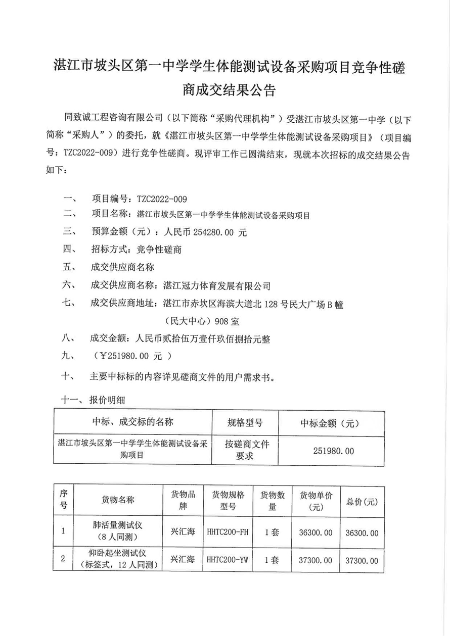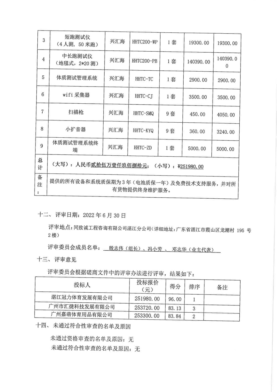 湛江市披頭區(qū)第一中學學生體能測試設備采購項目
