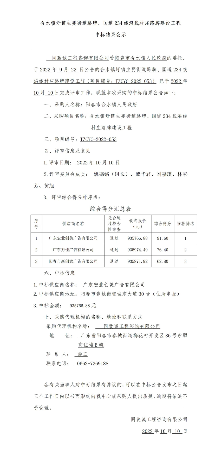 合水鎮(zhèn)圩鎮(zhèn)主要街道路牌、國道234線沿線村莊路牌建設(shè)工程