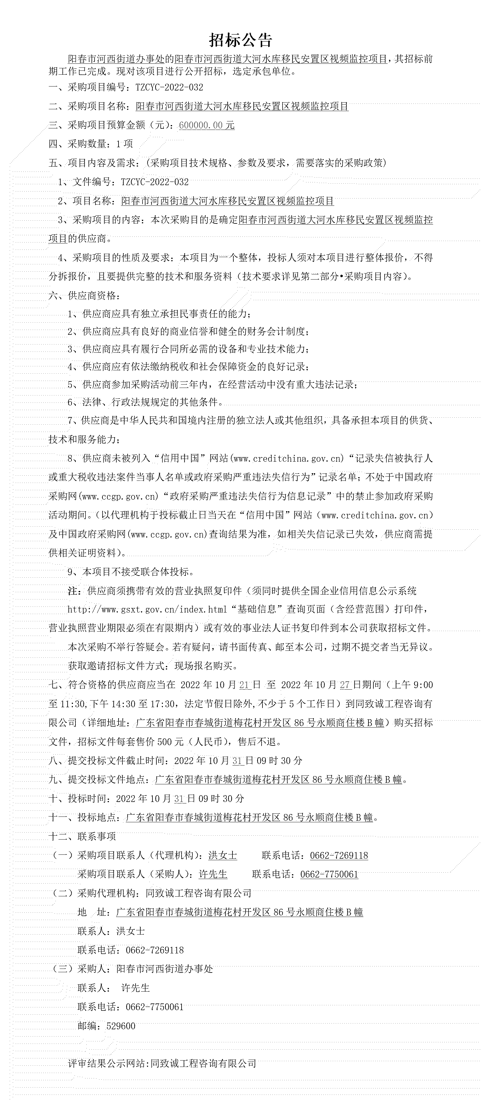 陽春市河西街道大河水庫移民安置區視頻監控項目