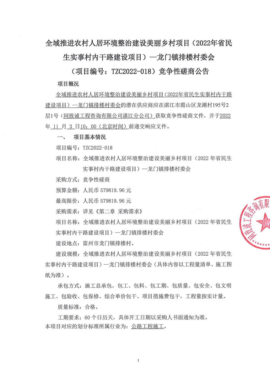 全域推進農村人居環境整治建設美麗鄉村項目(2022年省民生實事村內干路建設項目)—龍門鎮排樓村委會
