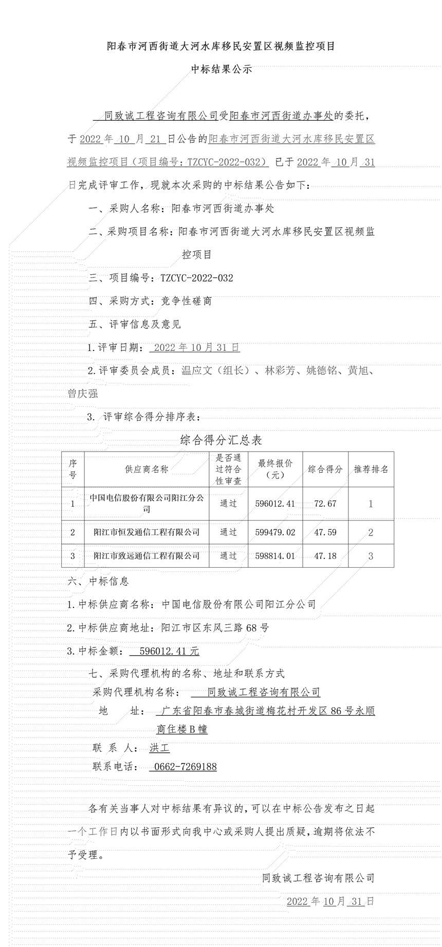 陽春市河西街道大河水庫移民安置區(qū)視頻監(jiān)控項(xiàng)目